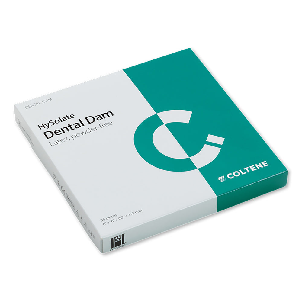 HySolate Latex Dental Dam is made of pure, natural rubber latex and is powder free. Powder free, low protein Dental Dam is a simple and clever measure to reduce the risk of developing latex hypersensitivity. Latex Dental Dam provides strong retraction. HySolate Dental Dam is available in a comprehensive variety of colors, sizes (5"x5" (127 x 127 mm) and 6"x6" (152 x 152 mm)), and thicknesses.