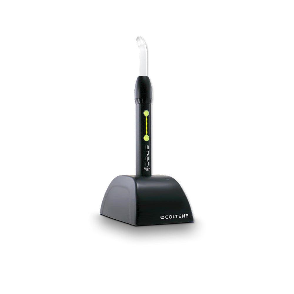 The S.P.E.C. 3 curing light defines performance without compromise. Chair time can be effectively reduced due to rapid and deep polymerization on various light cured materials. The sealed aluminum body ensures quick and easy disinfection between patients. The powerful Lithium Polymer Battery offers enough storage capacity to perform over 300 ten-second cures between charges. The Coltene S.P.E.C. 3 features multiple curing modes for maximum functionality in any clinical situation.